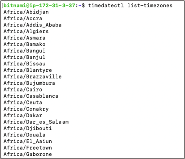 timedatectl list-timezones을 입력하여 시스템에서