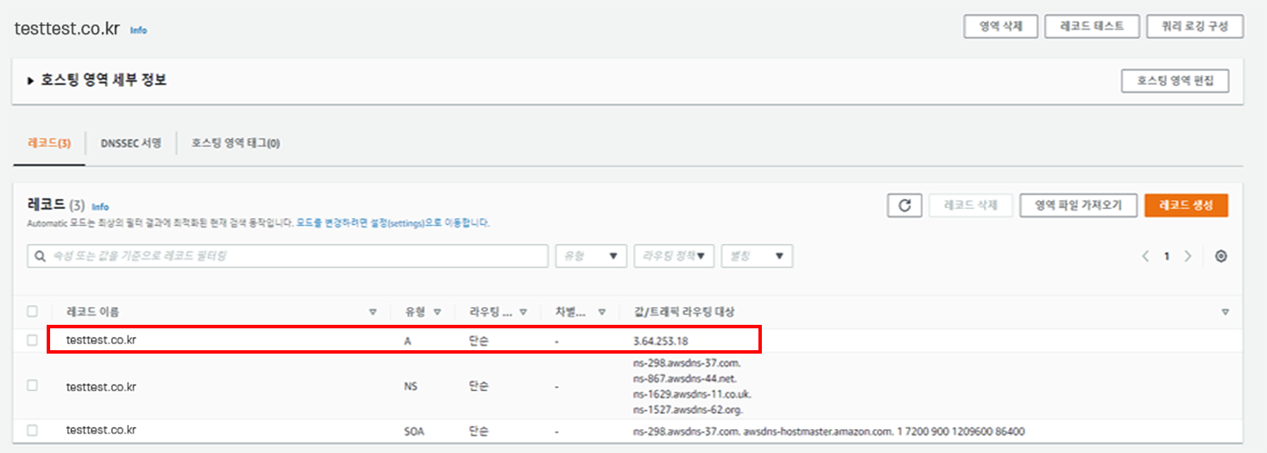 저장이 완료되면, 아래와 같이 A레코드가 추가된 것을