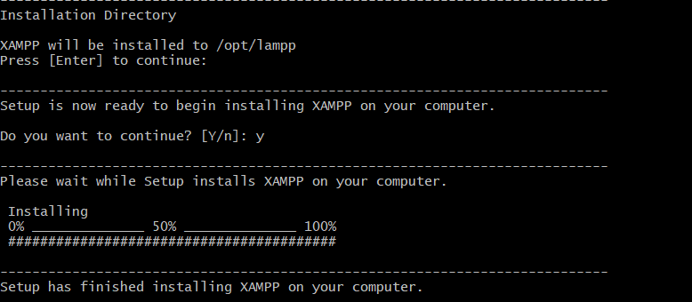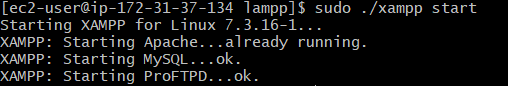 설치가 완료되었으면, cd /opt/lampp 명령어를 입력하여 lampp 폴더로 이동한 후, sudo ./xampp start를 입력하여 xampp를 실행시켜준다.