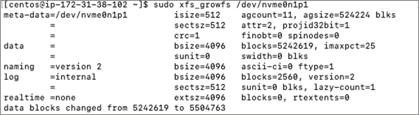 ex) sudo xfs_growfs /dev/nvme0n1p1