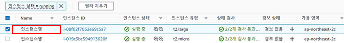 클릭하면 인스턴스에 대한 정보가 뜨는데요